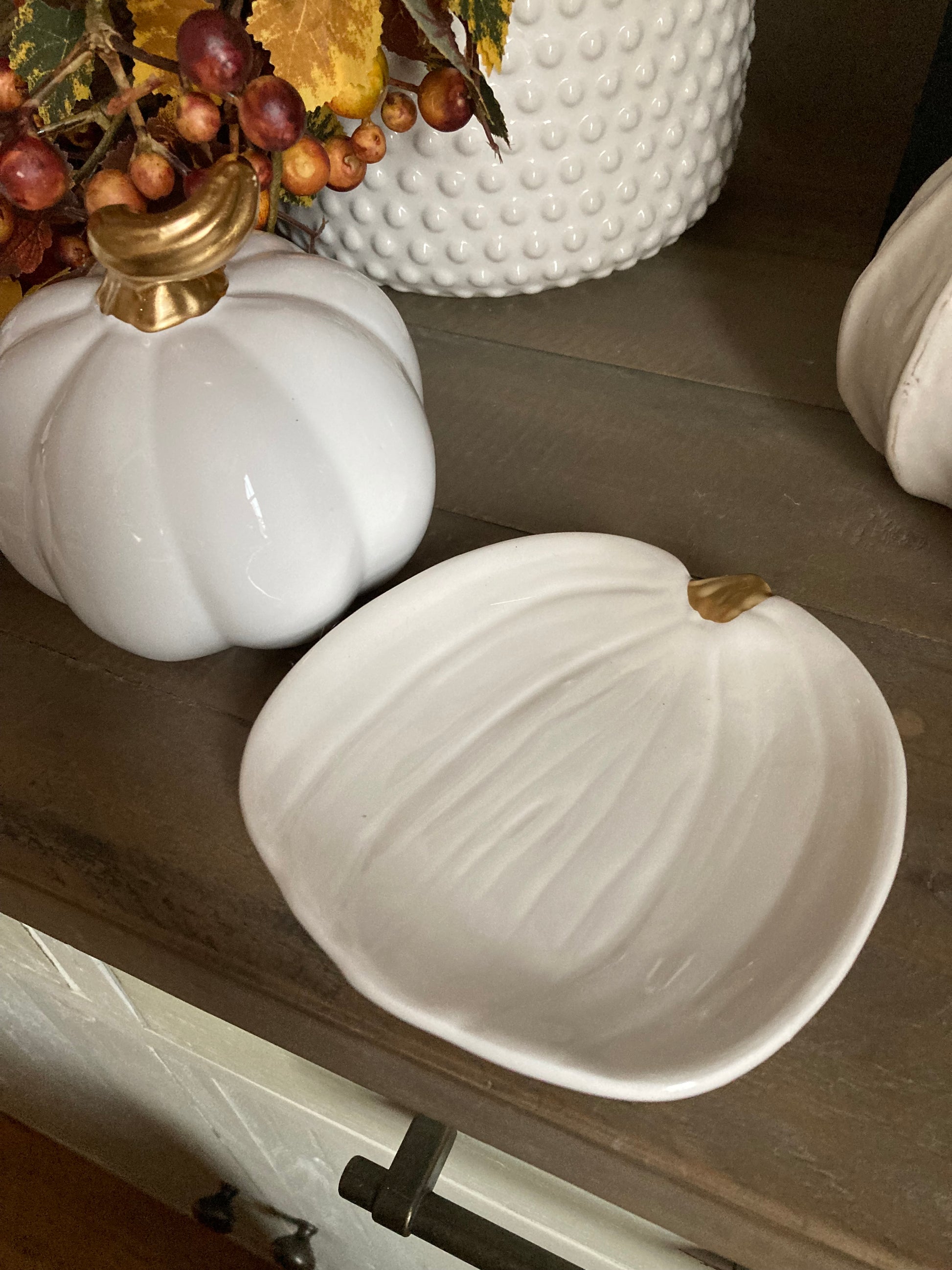 Ceramic pumpkin plate - white