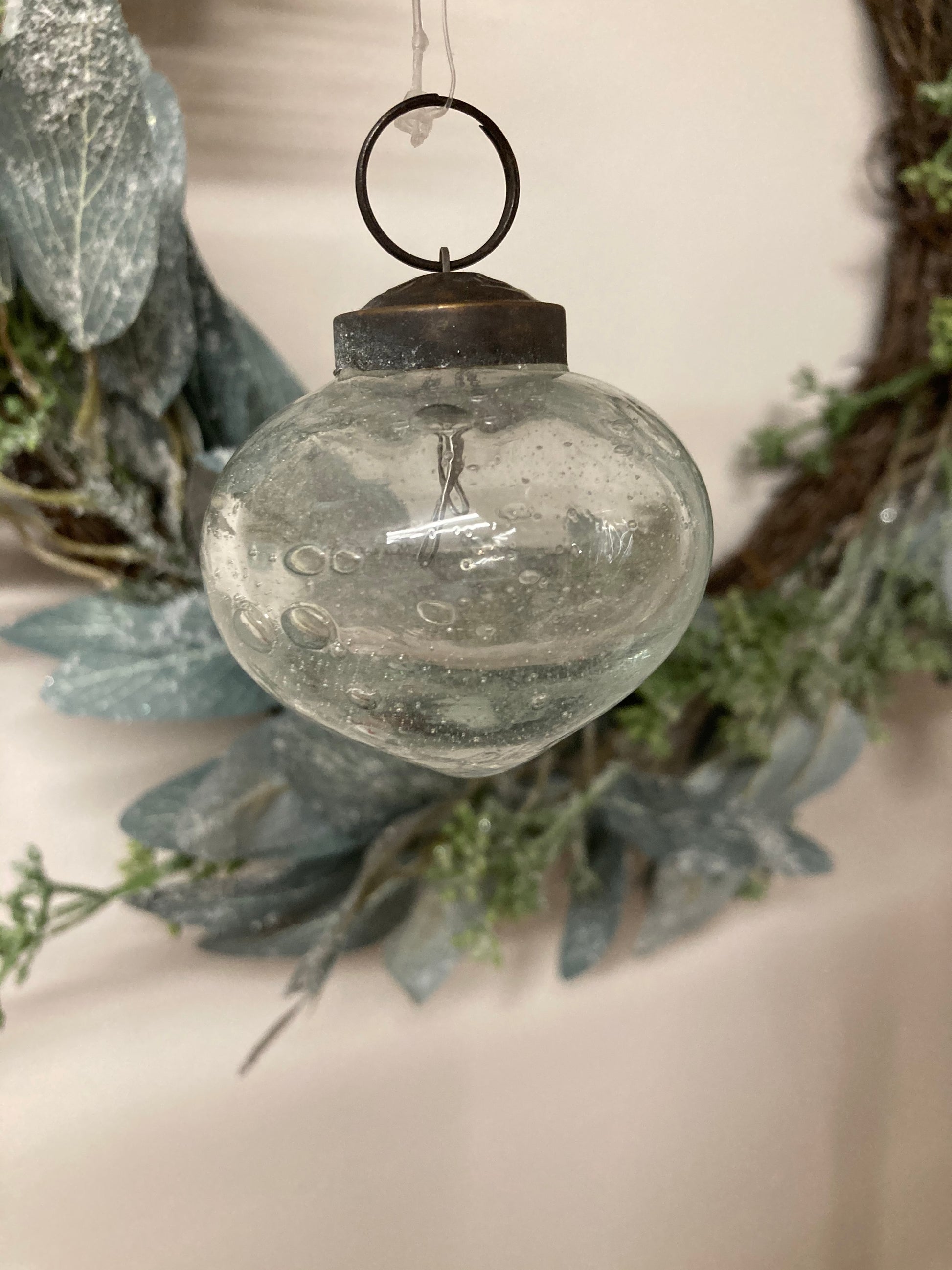 Our beautiful onion shaped glass bauble with metal top and ring for you to decorate with your own ribbon.
