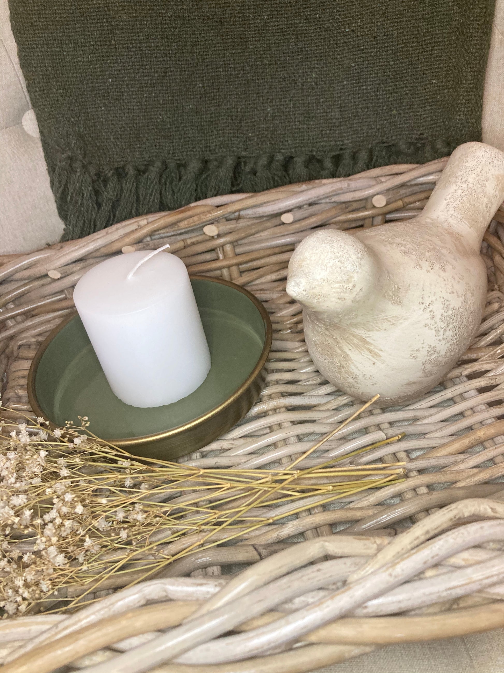 Our gorgeous candle tray is the perfect addition to your home. It has a beautiful, green, shiny finish on the inside and a bronze effect on the outside. A decorative and practical item.