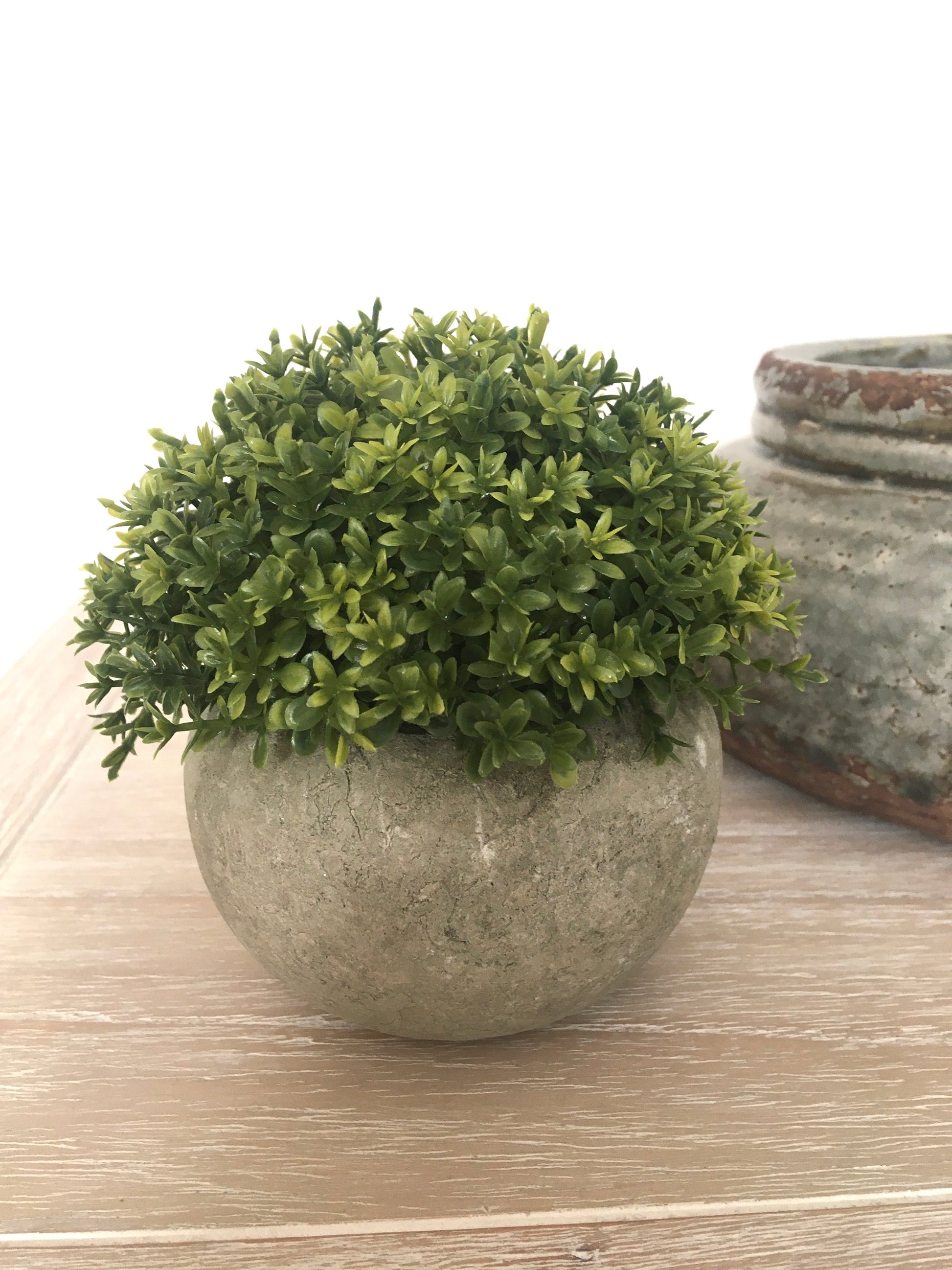 A touch of greenery for your home - this small, beautiful green plant in a pot will look great displayed anywhere in your home. An artificial but realistic plant with a stone effect pot.
