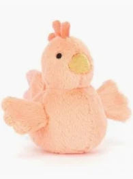Our Jellycat Fluffy Chicken is a very proud bird, with apricot fur, a two-tone comb and a mustard suedette beak! Plump and poised with fan-shaped wings and a gorgeous matching tail, this huggable chicken is ruling the roost!