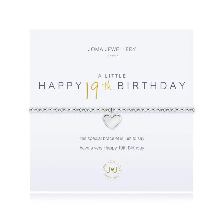 Our beautiful world-famous A Little Collection from Joma jewellery! Our Joma A Little 'Happy 19th Birthday' Bracelet features a captivating stretch design and a shining heart charm. Wrapped around one of our stylised cards and framed with a sweet sentiment: