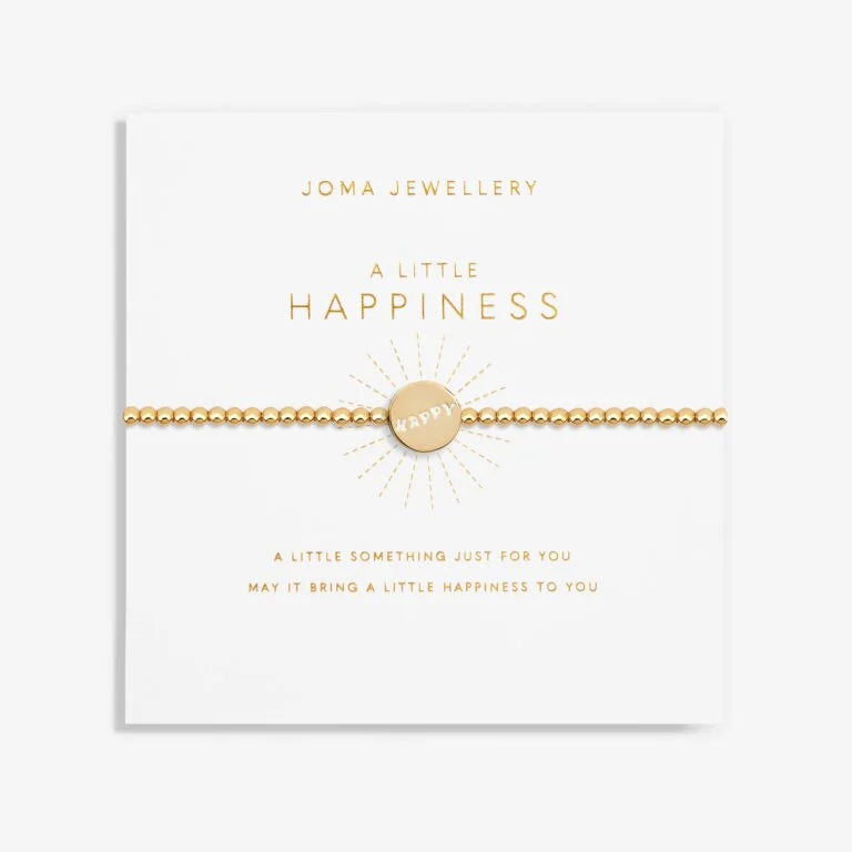 Say hello to our gorgeous Joma bracelet which is part of our A Little Collection! Our Joma A Little 'Happiness' Bracelet features a captivating stretch design and a precious gold-plated stamped disc charm. Wrapped around one of our stylised cards and framed with a sweet sentiment: