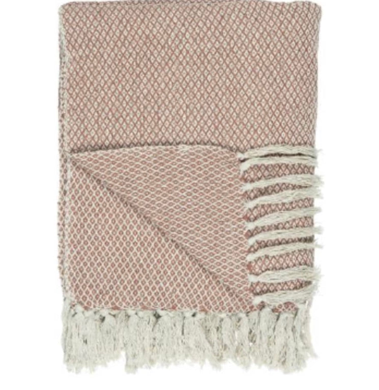 This rust throw has a diamond design and a fringe end. Stylish, practical and cosy. The perfect finishing touch for your living room, bedroom or outdoor space.