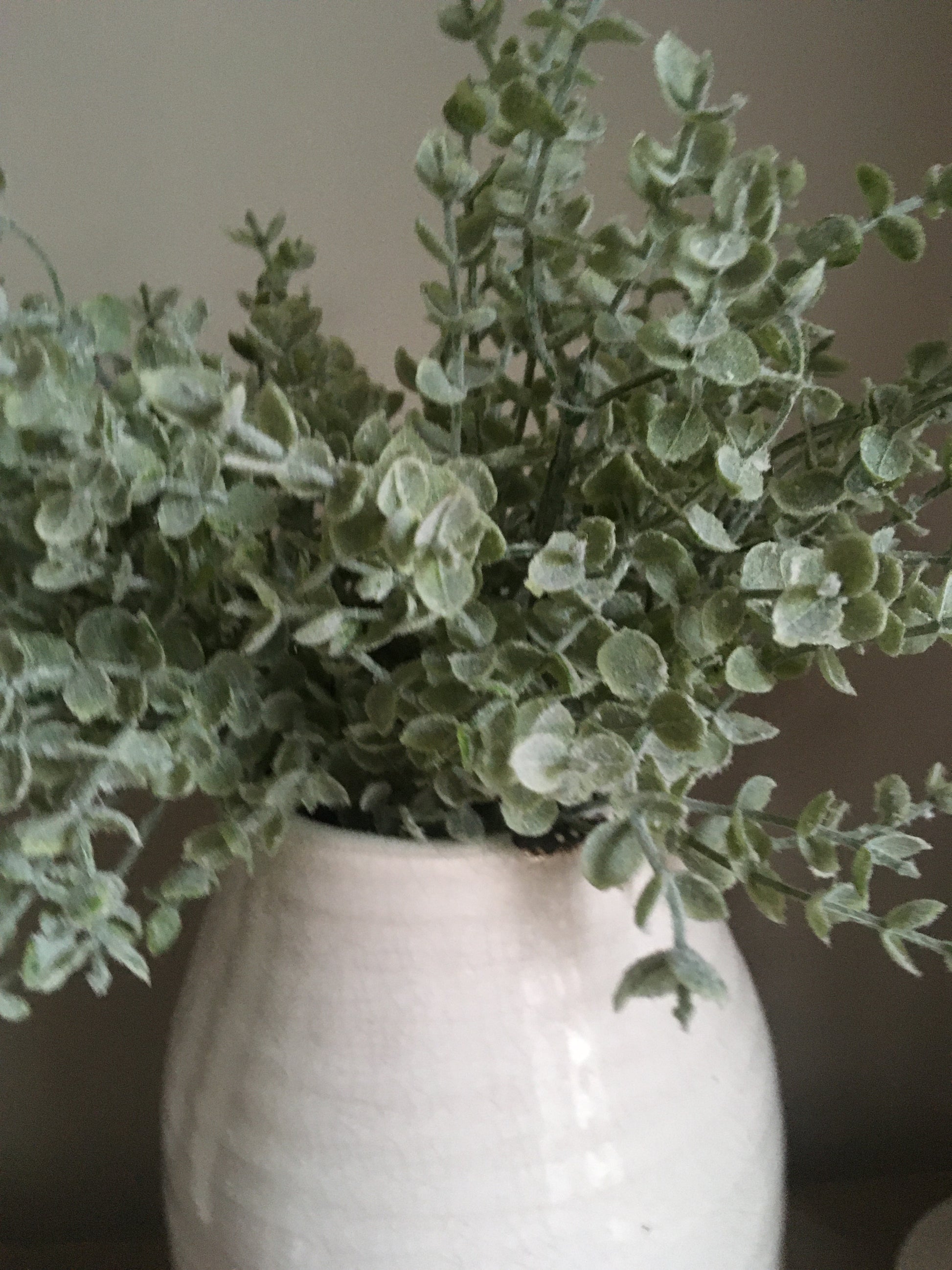 A beautiful, white vase with rustic, glazed effect. It has a distressed look with black marks on the vase, which is part of the look. It suits any home and looks perfect with your favourite stems.